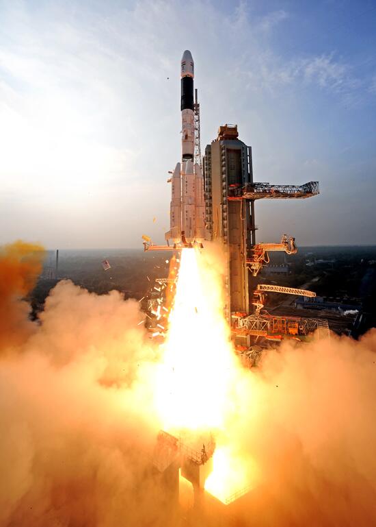 India’s Geosynchronous Space Launch Vehicle (GSLV) lifts off from Sriharikota, India, January 5, 2014. Photo credit: Indian Space Research Organization.