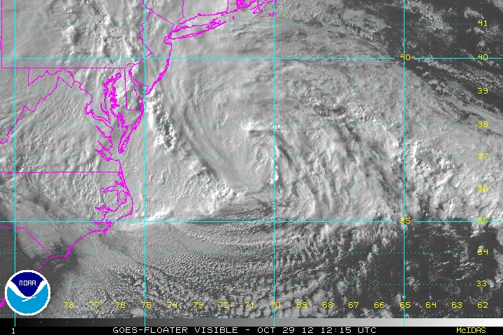 The National Oceanic and Atmospheric Administration’s (NOAA’s) GOES-13 satellite is back in full operation and tracking Hurricane Sandy. This image, taken today (October 29) at 12:15 UTC (8:15 am EDT), shows the vast reach of the storm.