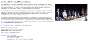 2026 GODDARD MEMORIAL DINNER, Mar 13, 2026, DC, 6:30 pm ET