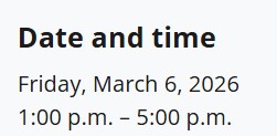 Date and Time: March 6, 2026; 9:30 a.m.-5 p.m.