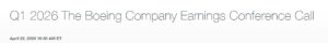 BOEING 1st QUARTER 2026 FINANCIAL EARNINGS TELECON, Apr 22, 2026, virtual, 10:30 am ET
