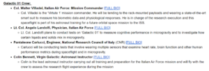 Aboard the flight will be three individuals from the Italian Air Force and the National Research Council of Italy who will conduct microgravity research.
