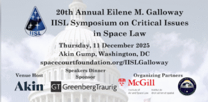 The 2025 Eilene M. Galloway Symposium on Critical Issues in Space Law will take place on December 11, 2025 from 8:00 am-5:00 pm at Akin Gump, 2001 K St., NW, Washington, DC. A virtual option is available.