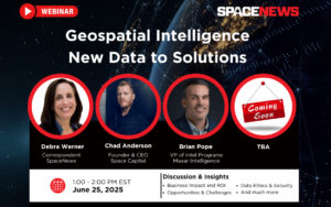 Space News will hold a webinar on June 25, 2025 from 1:00-2:00 pm ET on “Geospatial Intelligence: New Data to Solutions.”