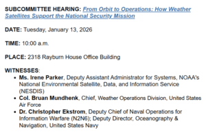 HSS&T SBCMT HRG ON WEATHER SATELLITES AND NATIONAL SECURITY, Jan 13, 2026, DC, 10:00 am ET