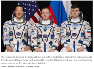 Russia will launch the Soyuz MS-27 mission to the International Space Station from the Baikonur Cosmodrome in Kazakhstan on April 8, 2025 at 1:47 am ET (5:47 am UTC, 10:47 am at Baikonur). They are scheduled to spend about eight months (instead of the typical six months) on the ISS, returning in December.