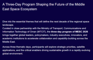 Novaspace’s Middle-East Space Conference will take place January 26-28, 2026 at the Oman Convention and Exhibition Centre, Muscat, Sultanate Oman.