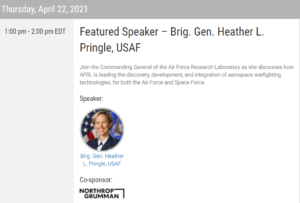 SPACE SYMPOSIUM 365 WEBINAR WITH BRIG. GEN. HEATHER PRINGLE, Apr 22, 2021, virtual, 1:00 pm ET