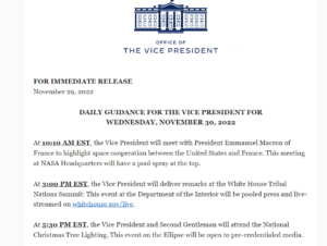 VP HARRIS MEETS WITH FRENCH PRESIDENT MACRON AT NASA, Nov 30, 2022, DC, 10:10 am ET